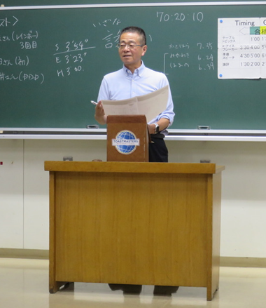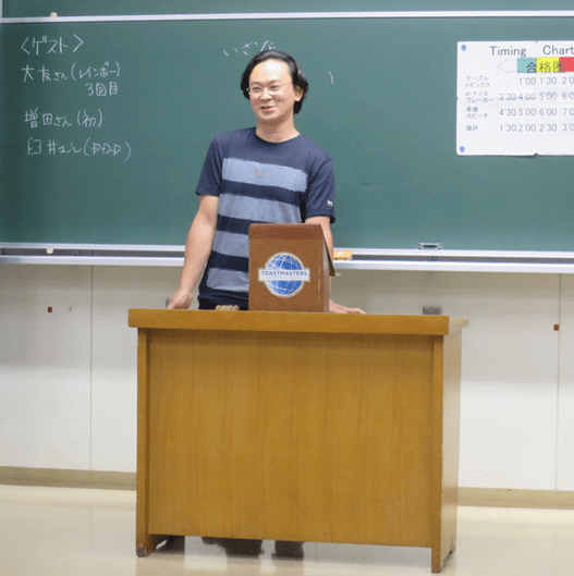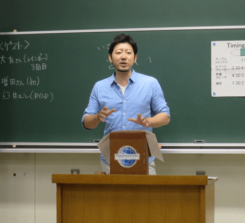 「面白そうなこと全部やってみたい!」というMさんの心の姿勢が会長に適任、という推薦でした。Mさん自身は新橋TMCに入会することになった経緯を振り返り、一番下から皆さんを支えたい、という決意表明。