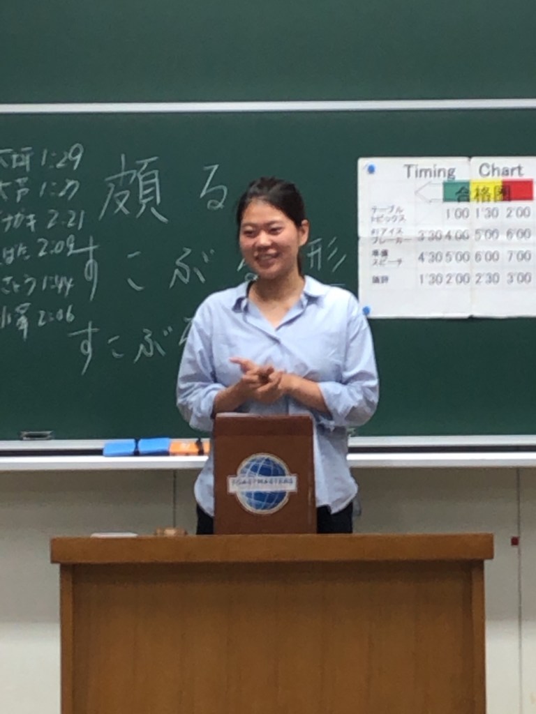 本日のTMOEは、いつも元気!溌剌としたY江さん。スピーディ&フレキシブルに例会をコントロールして頂きました。