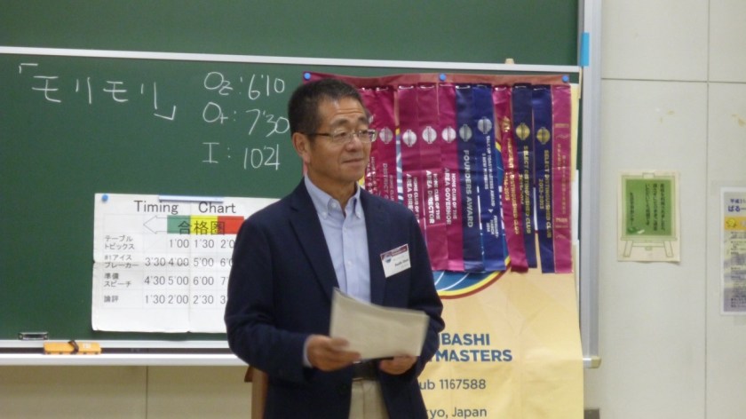 準備スピーチ3は前期会長のIさんによる「忘れ物」。全国大会のコンテスト委員長の大役をこなしたIさん。その経験は、大きなプレゼントになったようです。