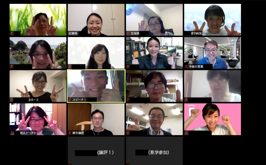 はじめにOさんより、スピーチ作りのコツを教わり、ZOOMのブレイクアウトルームを使用してグループワークを行い、最後にグループ代表者による即席のスピーチを発表しました。とても刺激的で楽しい時間でした!