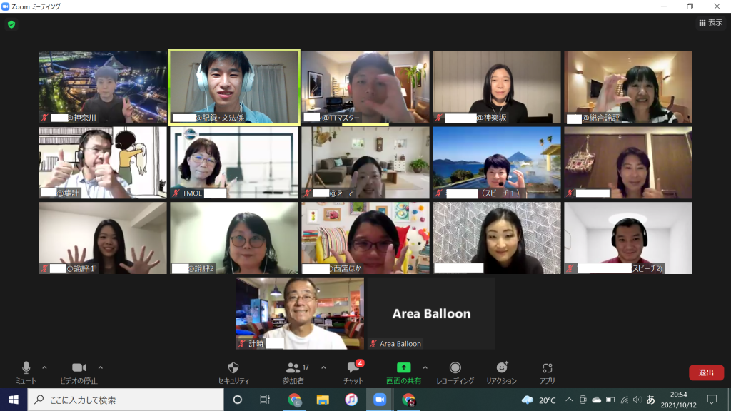 10月12日zoomにて第317回例会が開催されました。少し肌寒かったですが、新橋TMCではいつも通りの熱い例会が開かれました!ゲストでは神奈川TMCのS石さん、西宮TMCのM本さん、神楽坂TMCのS木さんの三名が参加してくださいました。