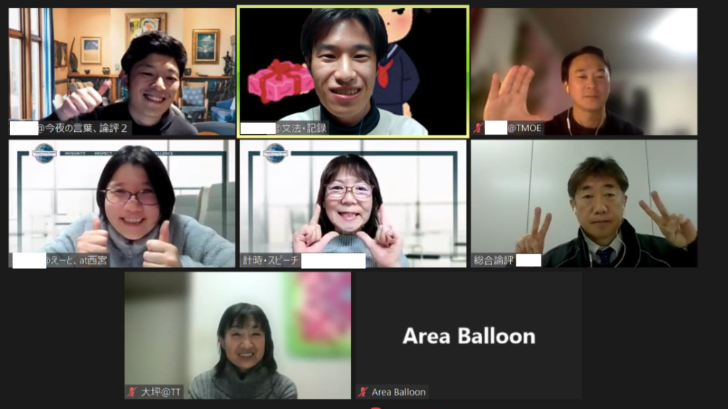 論評の部は通常の論評+SHOさんのスピーチに対し全員からフィードバックを行うという変則的な形で行われました。建設的な意見がたくさん出た有意義な論評の時間になったと思います!